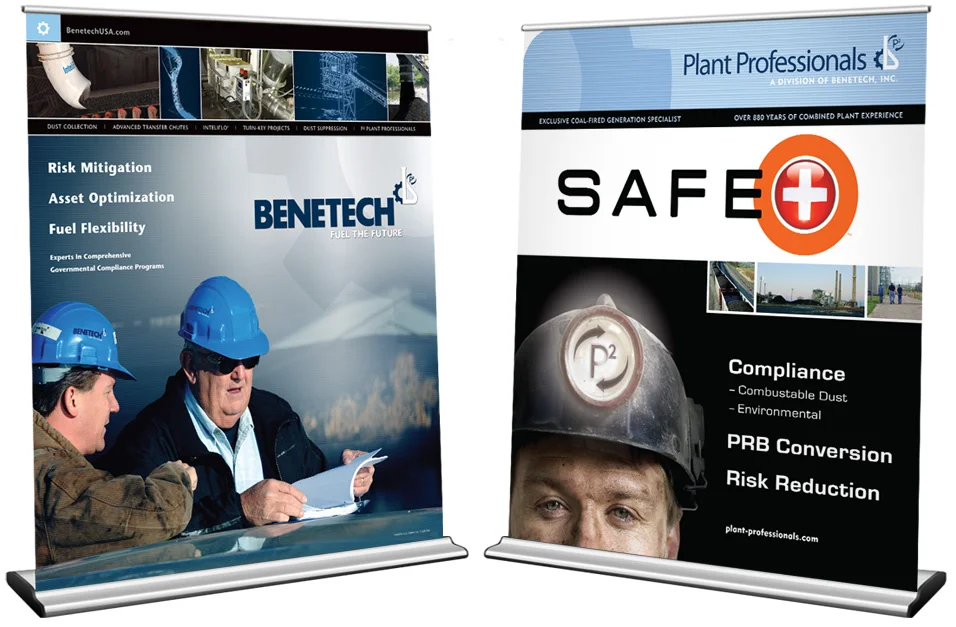 Offering TDM in combination with Plant Professionals, pop-up banner graphics promoted their trade show attendance. The designs included prominent Benetech and P2 team members to provide follow-through connection in customer service and experience.