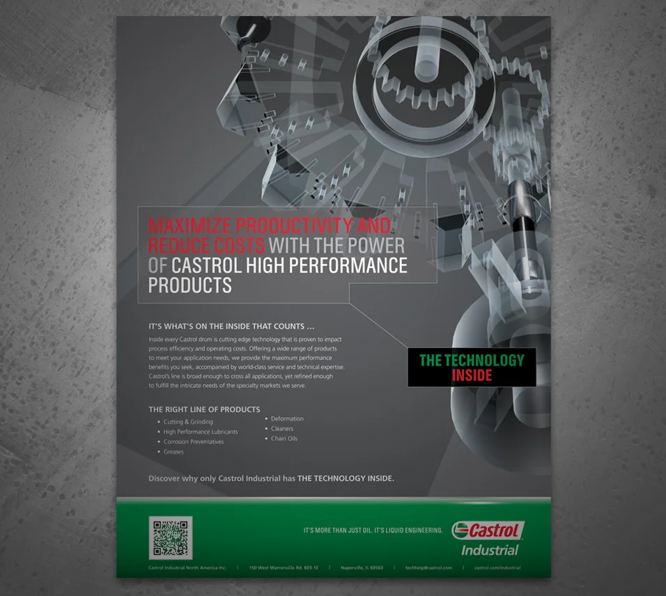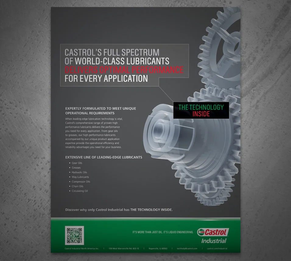 The first ad promoted Castrol’s wide range of products for machining and performance lubrication, while the second focused on Castrol Industrial lubricants.