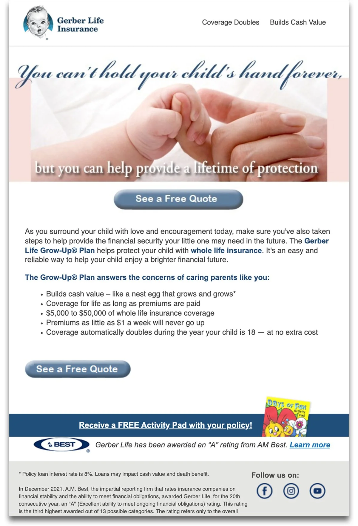 GOAL: Create a new version of the “Holding Hands” Grow-Up® Plan email for A/B testing old vs new. Apply creative best practices and utilize imagery and messaging that conveys a modern, authentic and genuine vibe.